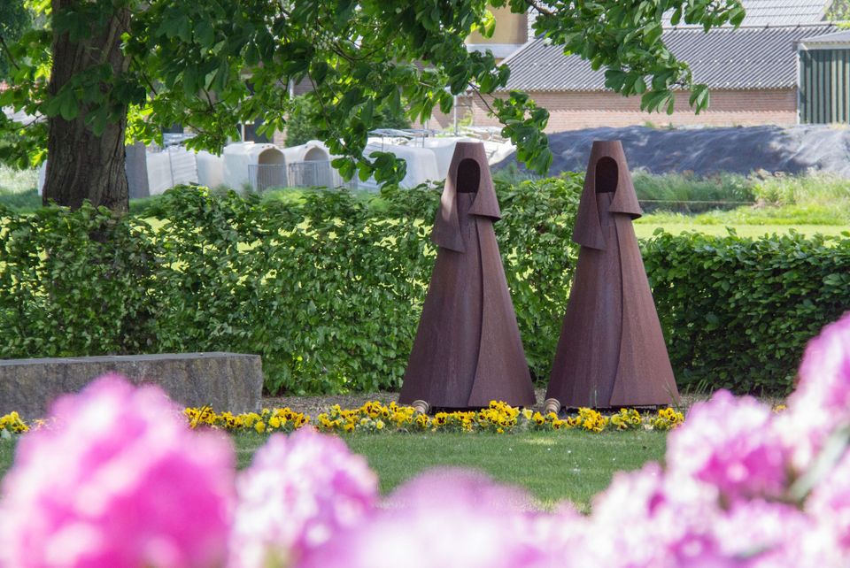 Achter de kerk is een weiland omgevormd tot kloostertuin, als dankbetuiging aan de 'zusters van Boerdonk. Kom langs en neem een kijkje in de tuin. Die bestaat uit een grasveld met padenpatroon, boomgaard met vruchtenbomen, pluktuin en twee prachtige kunstwerken.
